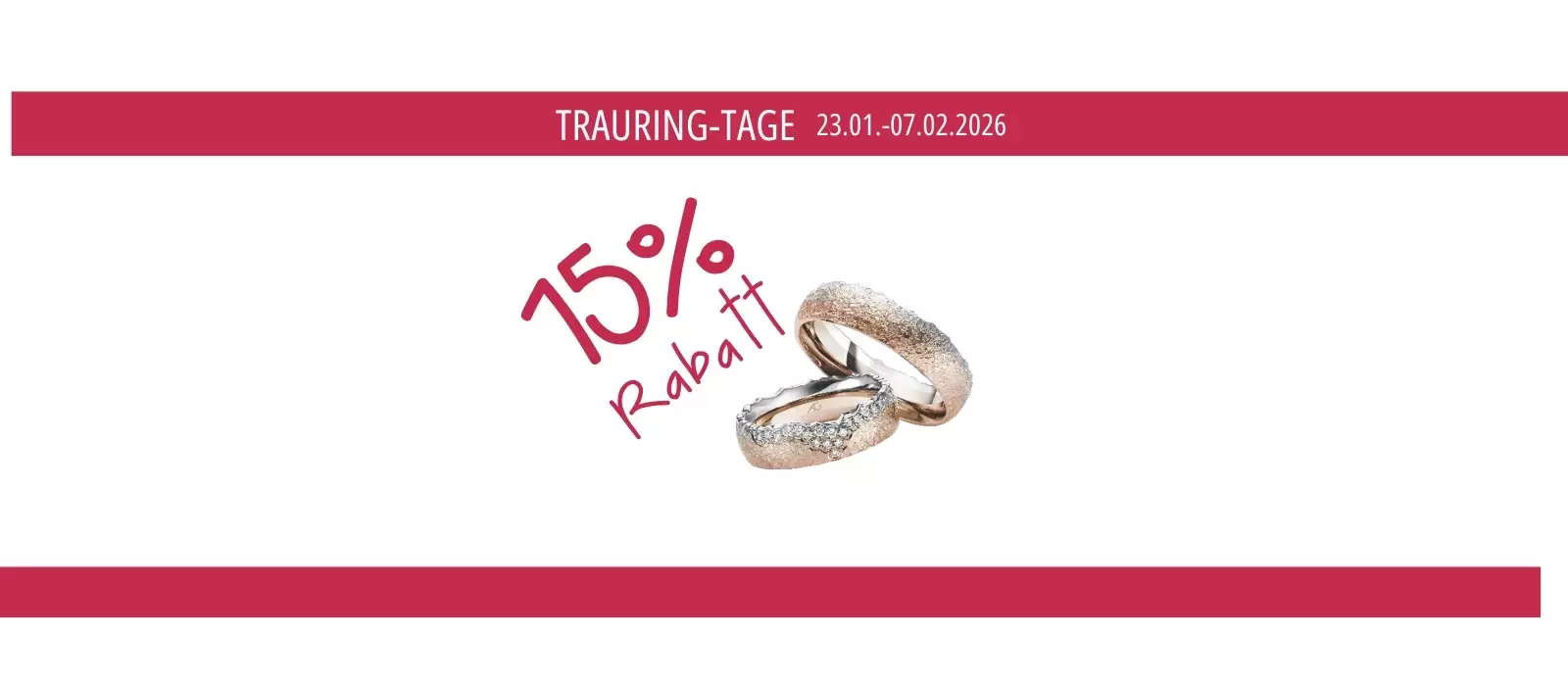 An den Trauringtagen erhalten Sie 15% Rabatt auf den Kaufpreis Ihrer Trauringe.